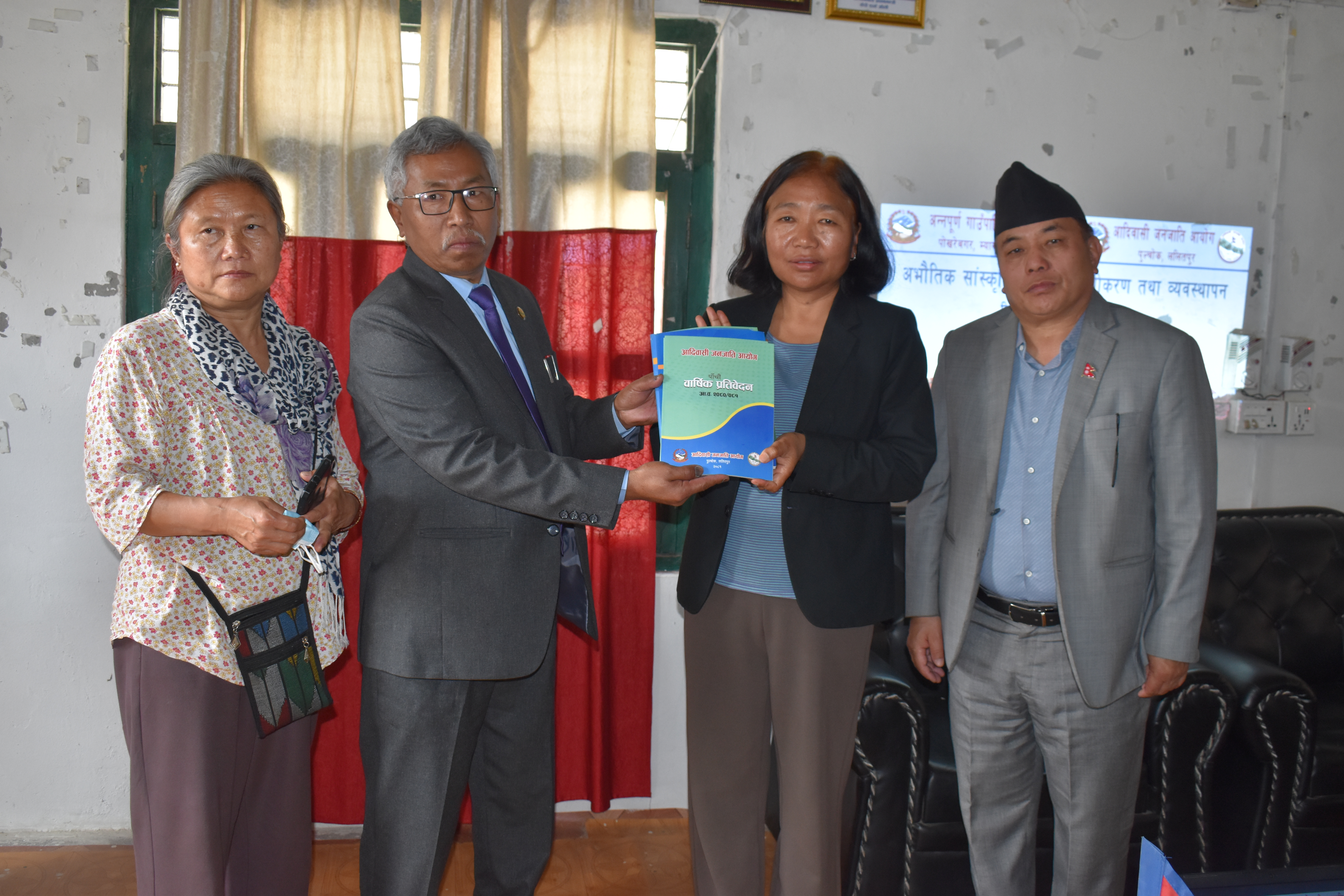 आयोगका मा. सदस्यद्वय डा. मीन बहादुर श्रीस र मा. सूर्यबहादुर गुरुङद्वारा आयोगको वार्षिक प्रतिवेदन हस्तान्तरण